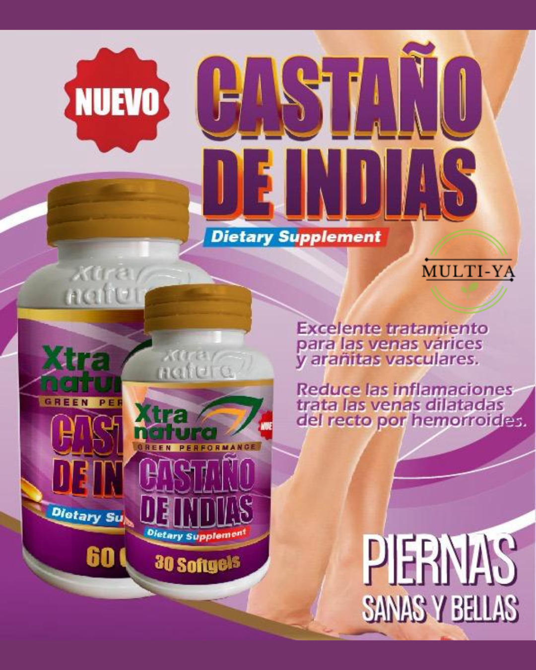 🌰 Castaño de Indias (Aesculus hippocastanum) Es un extracto vegetal rico en escina y flavonoides, usado como venotónico y vasoprotector para fortalecer los vasos sanguíneos y mejorar el retorno venoso, aliviando los síntomas de la mala circulación.