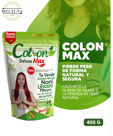 En Distribuciones MULTI-YA, sabemos que un sistema digestivo limpio es la base de una salud integral. El Colon Max suplemento natural ha sido diseñado pensando en las necesidades de aquellas personas que sufren de pesadez, estreñimiento o inflamación abdominal constante. El Equipo MULTI-YA ha seleccionado esta presentación en polvo por su facilidad de absorción y la rapidez con la que sus componentes comienzan a actuar en el organismo, permitiendo recuperar la sensación de ligereza desde las primeras tomas.
